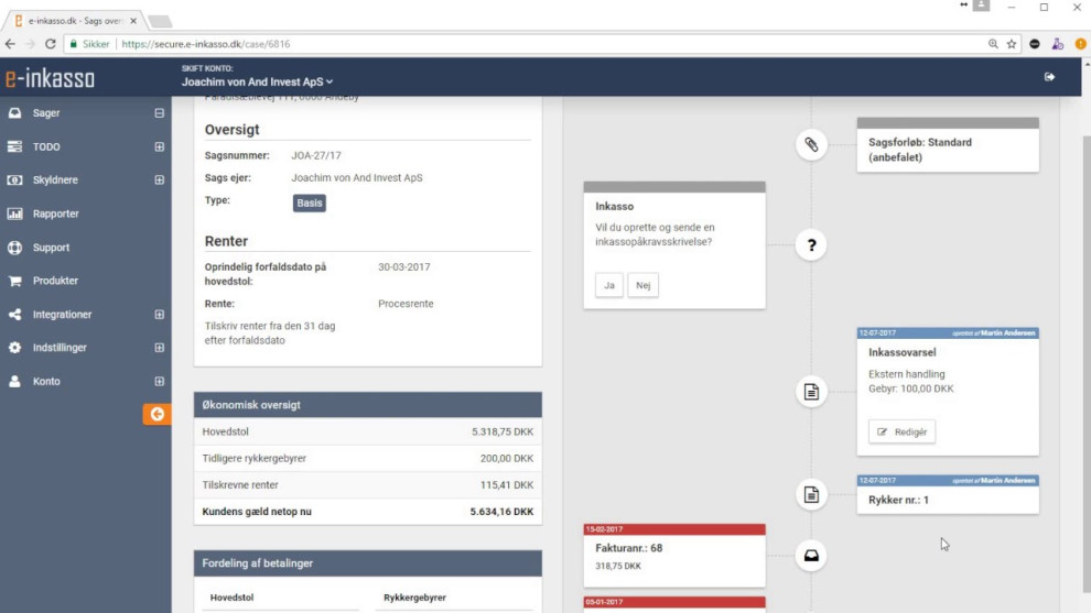 Integrationen til CollecTech giver dig mulighed for at overføre dine forfaldne fakturaer fra e-conomic til din profil hos collectech.dk, hvorefter du kan starte inkassoprocessen selv. På collectech.dk kan du selv inddrive dine tilgodehavender nemt og hurtigt. Du har en række inkassoværktøjer, som overflødiggør brugen af advokater og inkassoselskaber. Du beholder selv alle de mange renter og gebyrer på sagerne, hvilket kan gøre det særdeles attraktivt at inddrive sine penge selv. I CollecTech kan du lave inkasso og meget mere per SMS, mail og brevpost. Du kan lave afdragsordninger, akkord-tilbud, og tage sagen i Fogedretten. Der er mulighed for at overføre sagen til en inkassopartner for udkørende inkasso, ligesom man også kan få en partner til at forestå den retslige del, hvis man mod forventning ikke ønsker at gøre det selv.