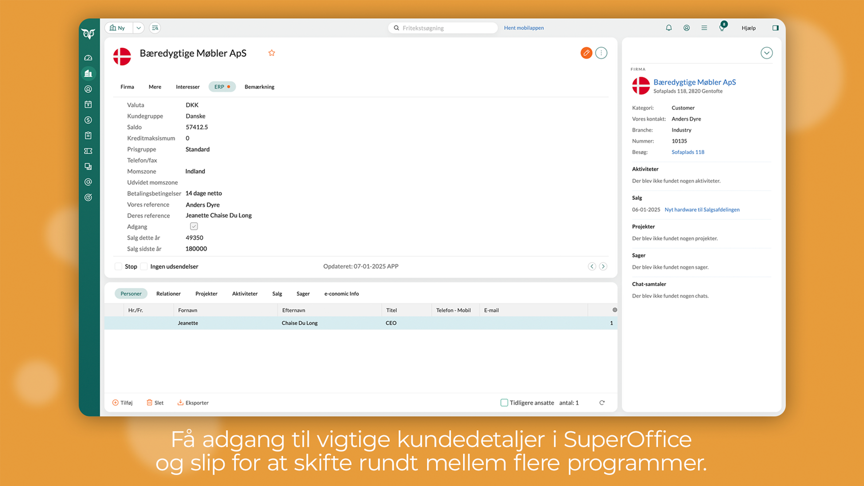 - Afliv manuelle arbejdsgange. Klik nemt nye kunder fra SuperOffice over i e-conomic