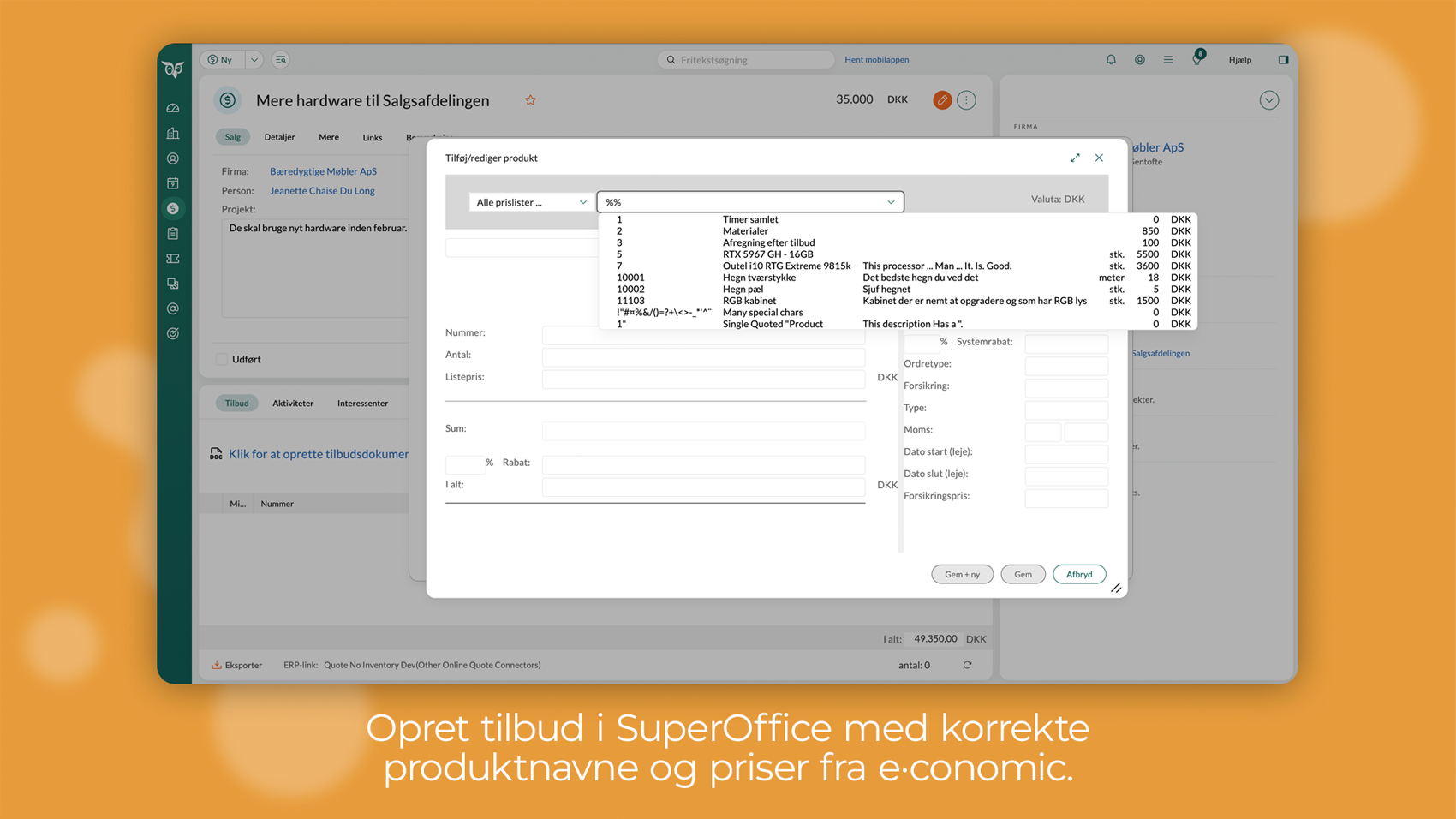 - Gør din pipeline mere præcis ved at lave tilbud i SuperOffice, baseret på prislisten i e-conomic