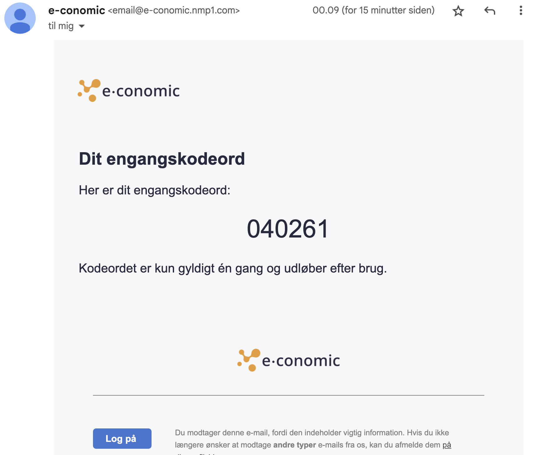 - Den første mail fortæller dig at der er en lønkørsel som afventer din godkendelse. Den næste mail indeholder en seks-sifret engangskode som du skal bruge til at se og godkende lønnen.