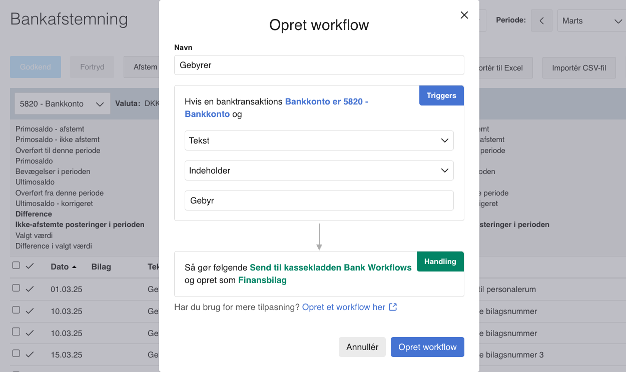 - Sådan opretter man bank-workflows direkte fra overførselsvinduet