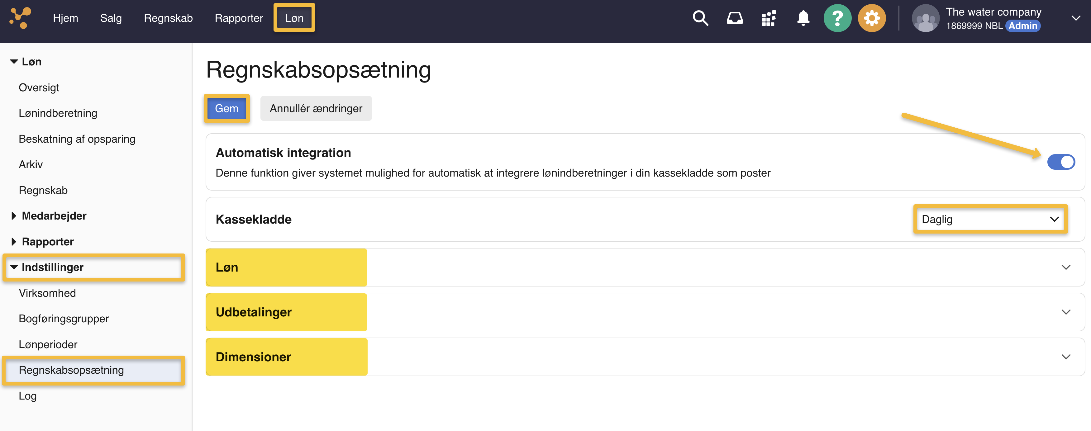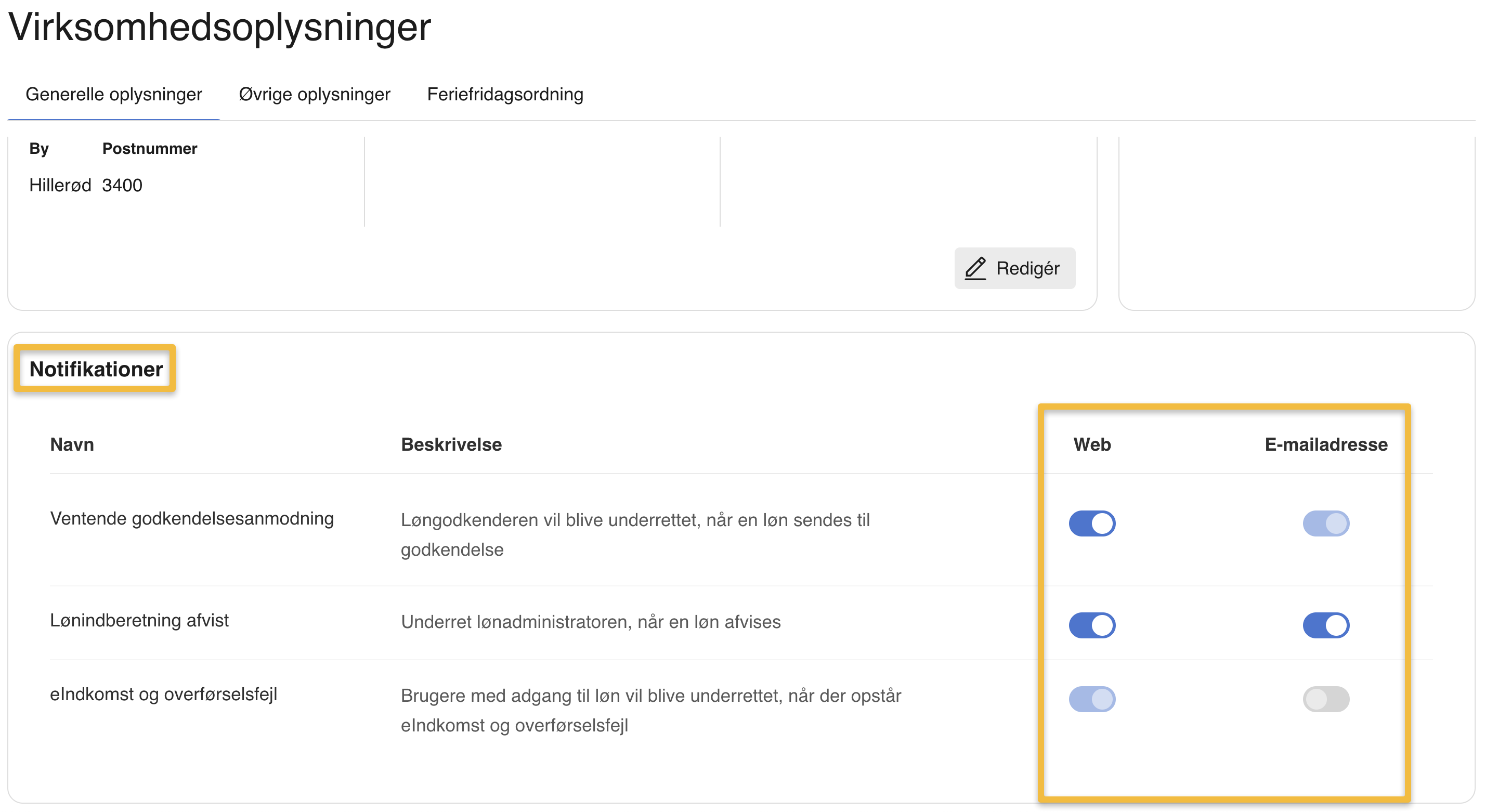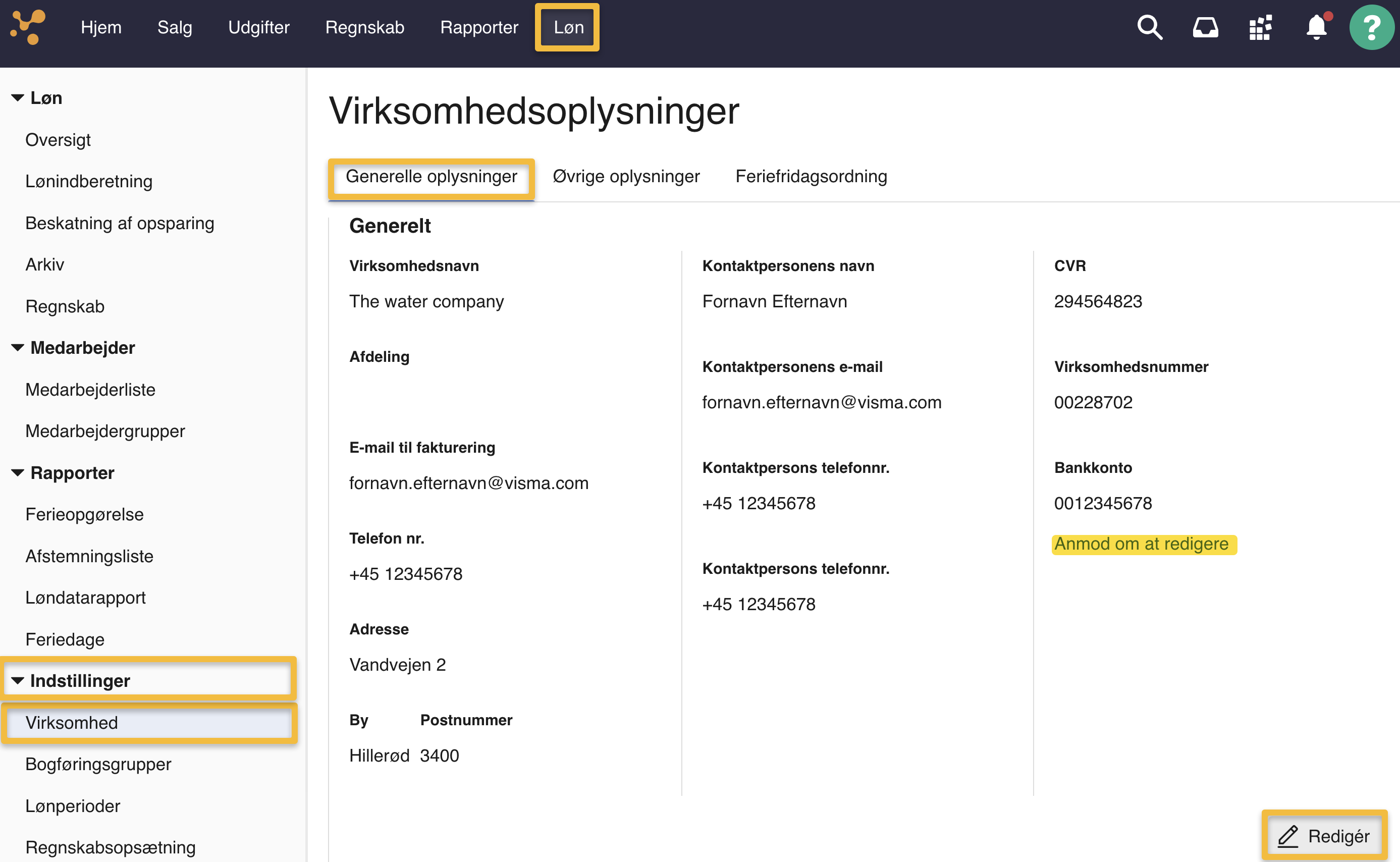 - For at Løn skal fungere så optimalt som muligt, kan det være en god ide at gennemse dine virksomhedsoplysninger er korrekte og sætte yderligere indstillinger op.