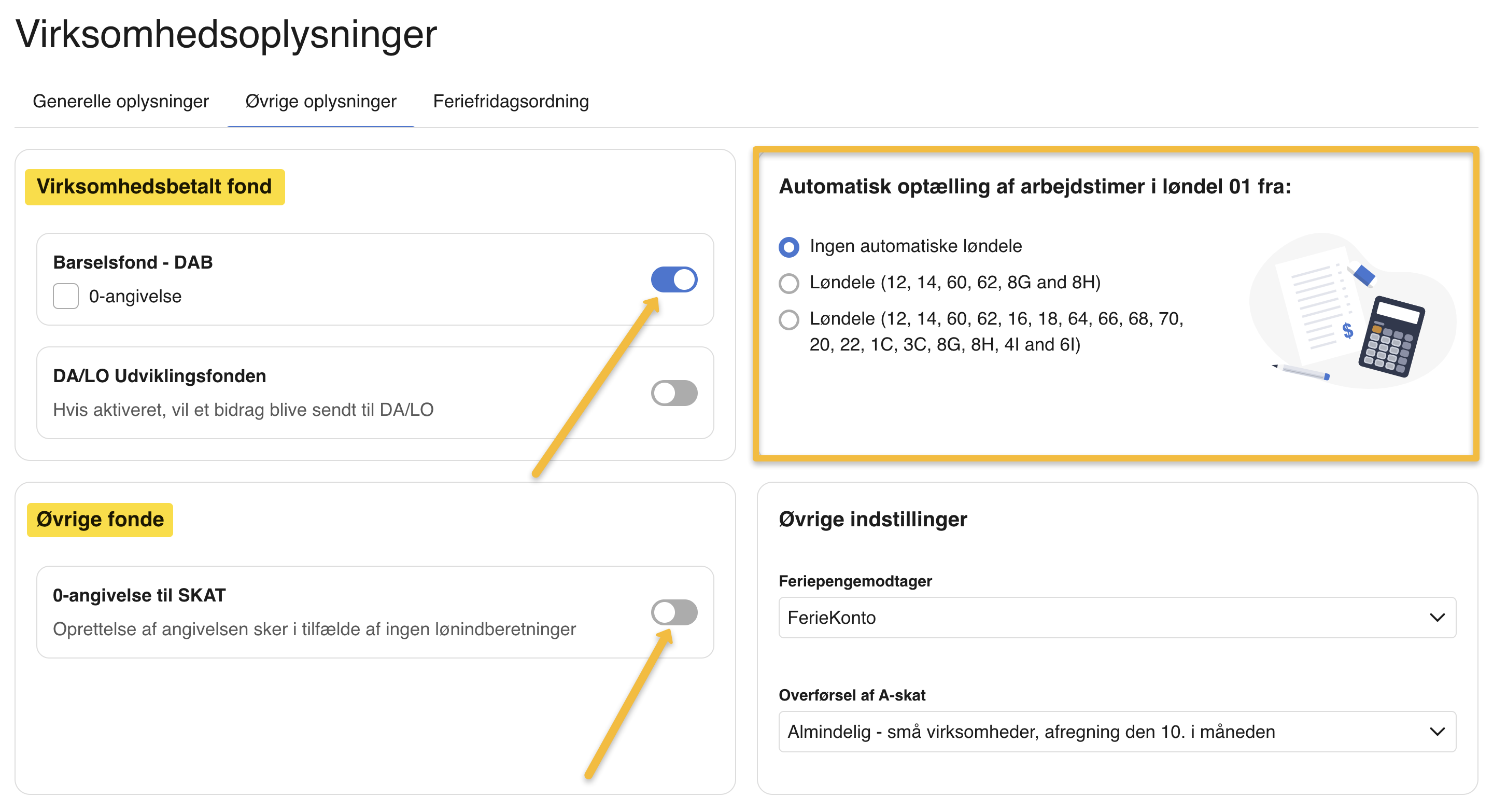 - Under samme fane kan du også angive om arbejdstimer for timelønnede medarbejdere skal udregnes automatisk.