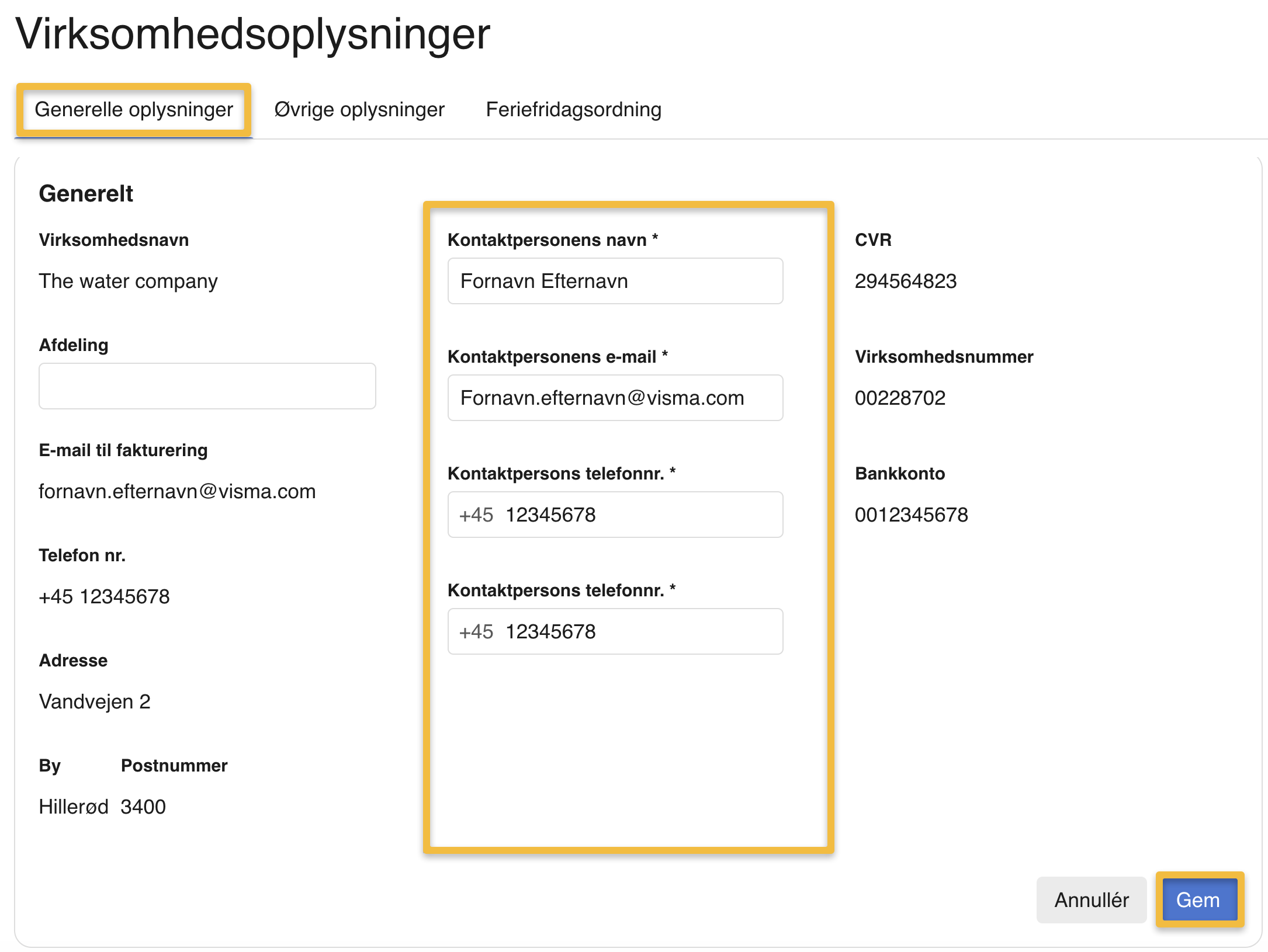 - Når du har gennemset dine virksomhedsoplysninger kan du indstille virksomhedens øvrige oplysninger.