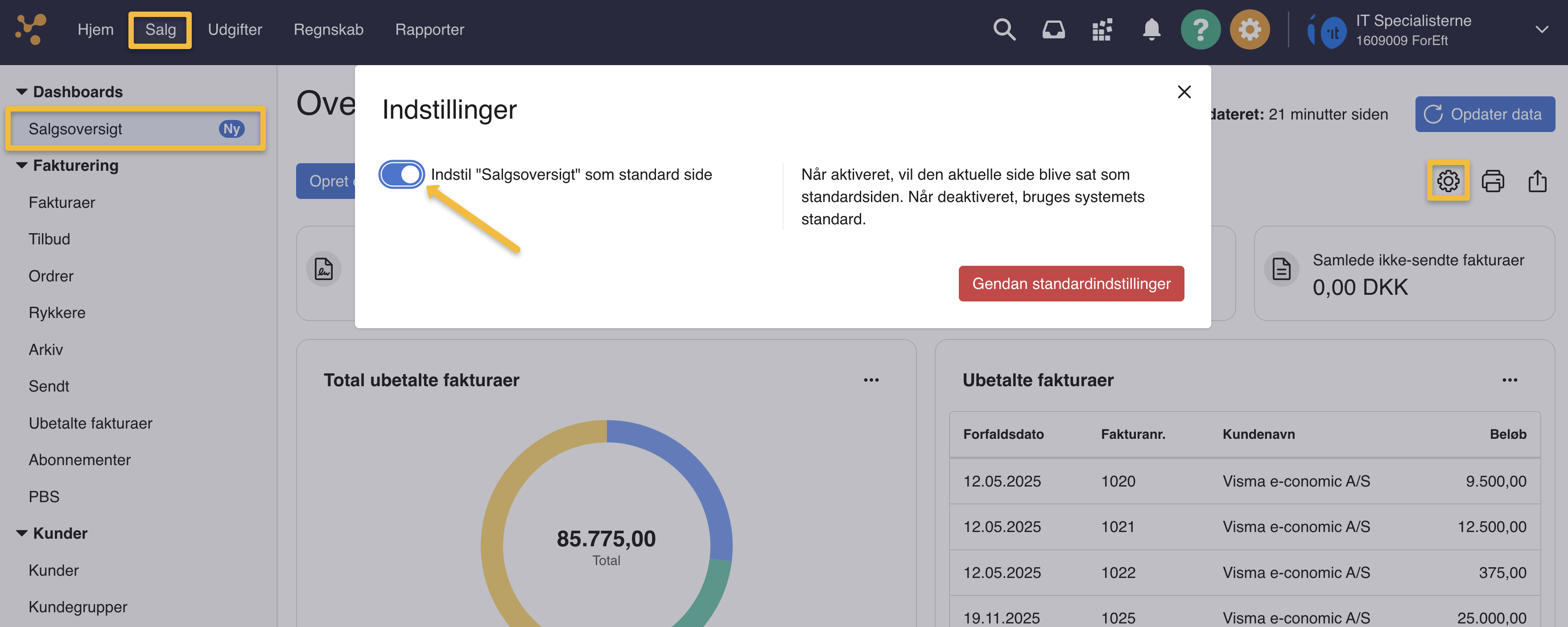 - Aktiver "Indstil "Salgsoversigt" som standard side"