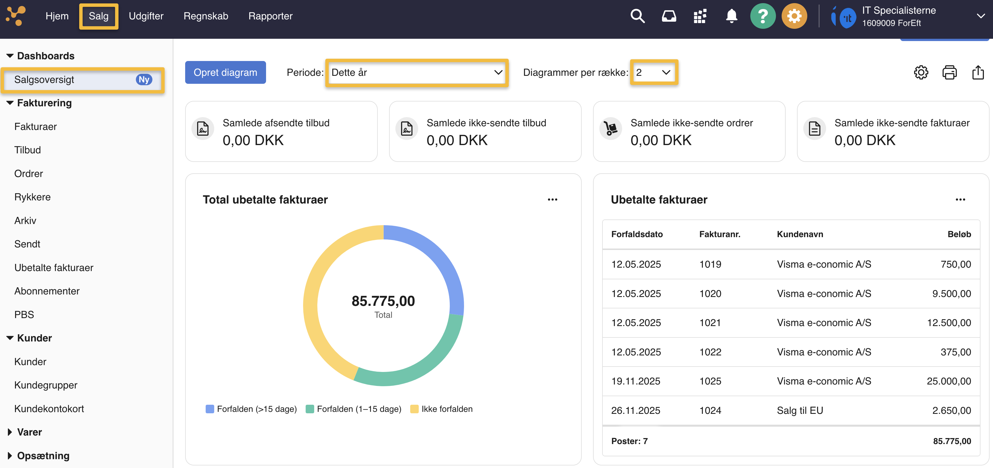 I e-conomic kan du nemt få en oversigt over din virksomheds salg via dit Dashboard. Dashboardet viser forskellige rapporter, hvoraf nogle giver dig information om, hvilke kunder og varer der omsættes mest. Disse rapporter kan give dig en god indsigt i, hvordan din virksomhed klarer sig i forhold til salg og kundeloyalitet.