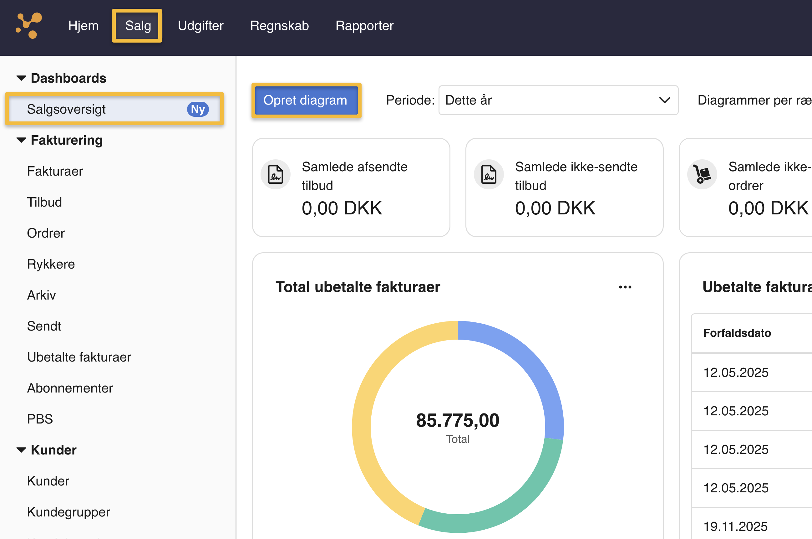 - Nu vil du fremover se dit dashboard som det første, når du trykker på fanen "Salg"