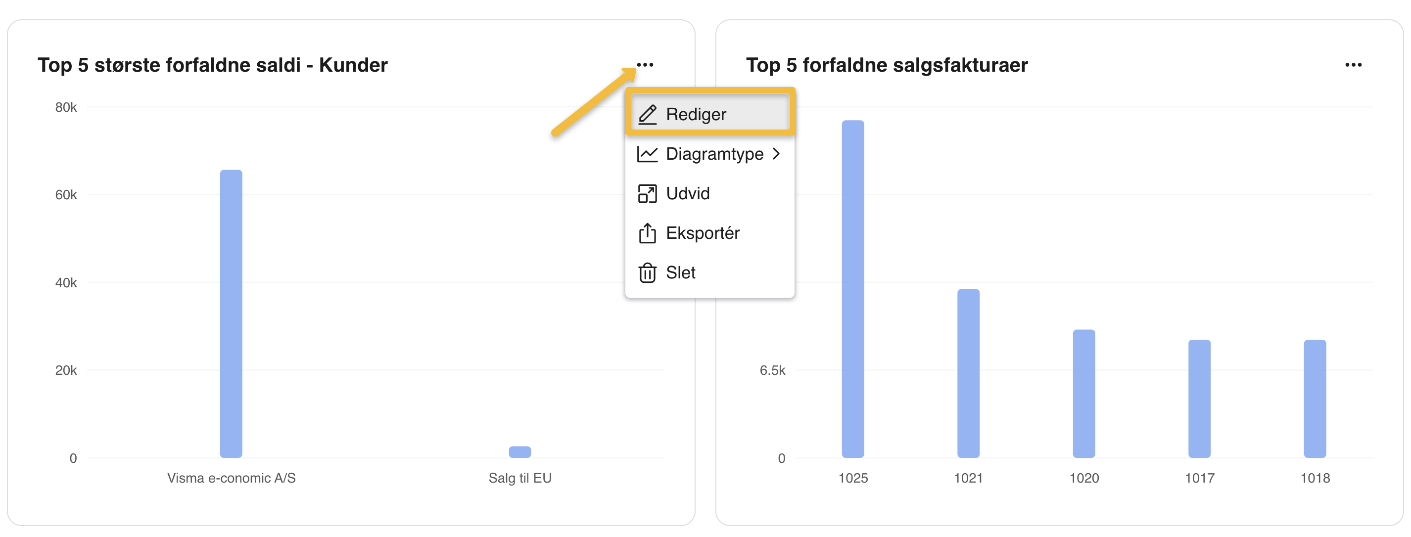 - Du kan redigere dine eksisterende diagrammer ved at trykke på ikonet med tre prikker i højre hjørne af hvert diagram, og vælge "Rediger".