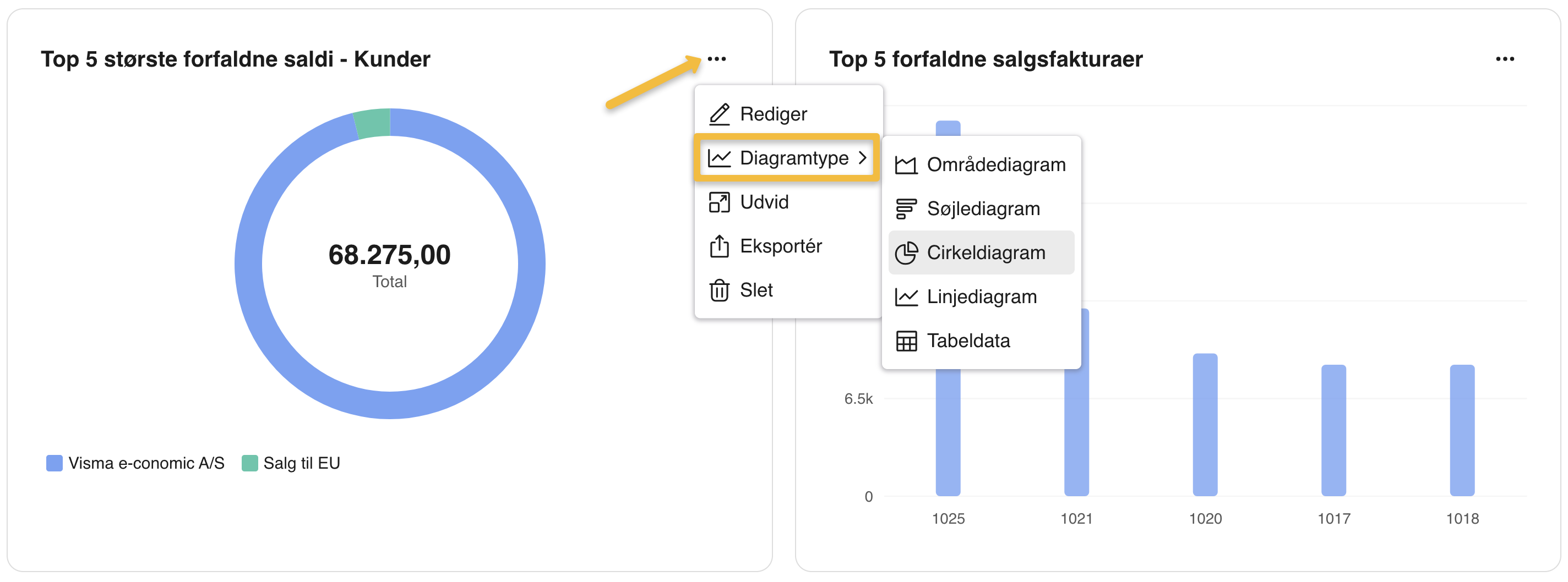 - Du kan også ændre diagramtypen ved at trykke på de tre prikker og herefter vælge en diagramtype fra listen.